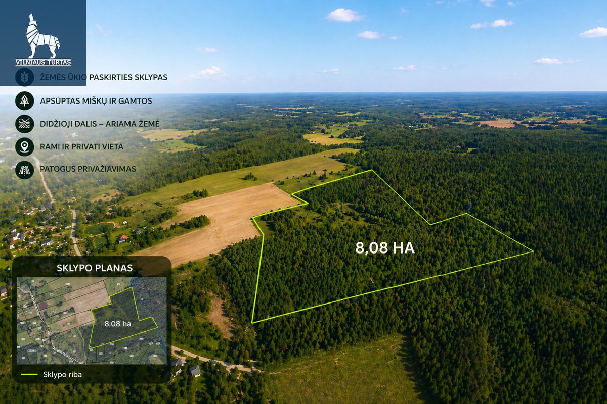 Parduodamas 8,08 ha sklypas Vilniaus r.