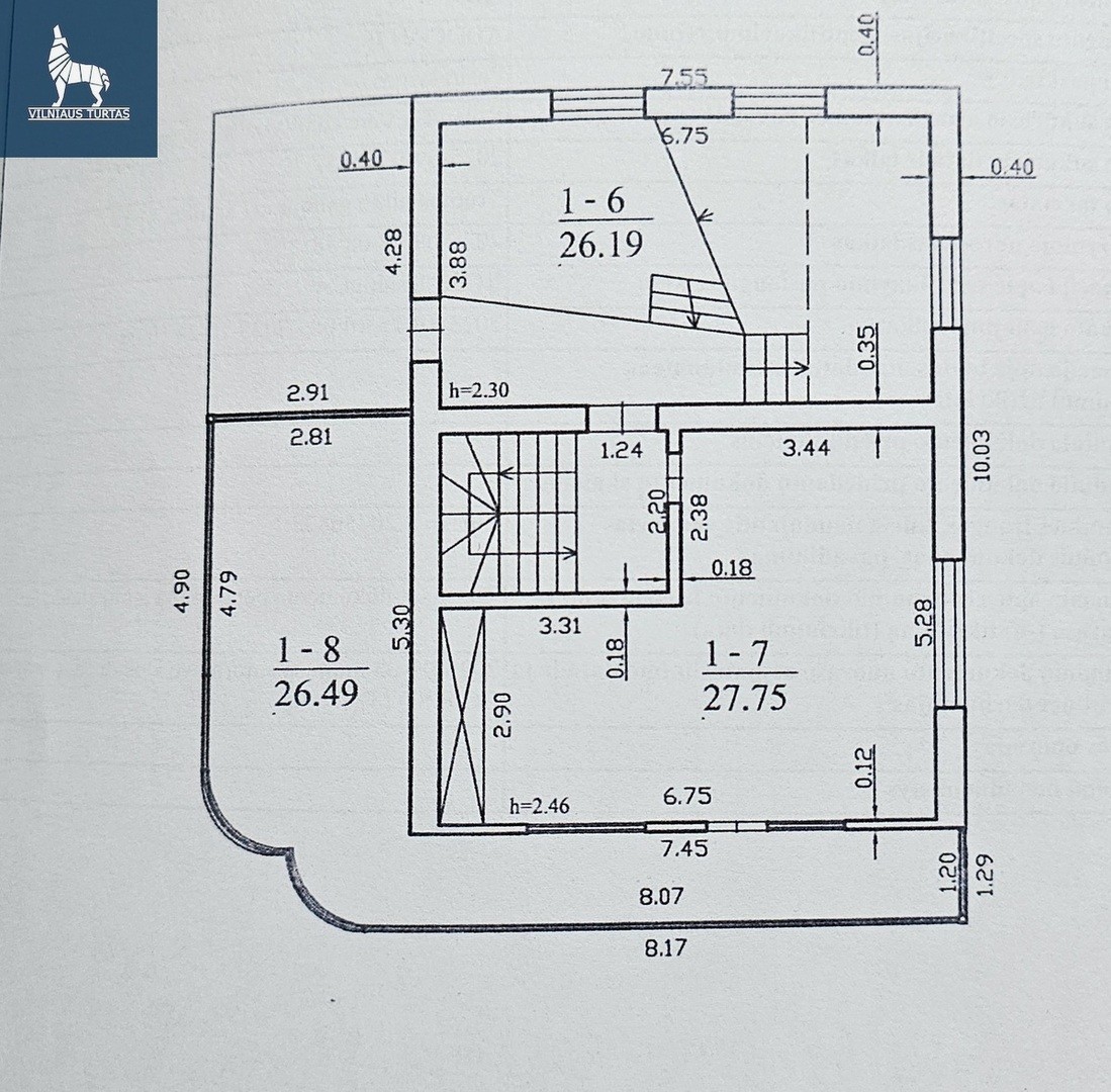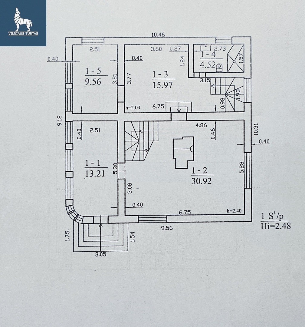 I a.: tambūras, virtuvė, kambarys, san. mazgas