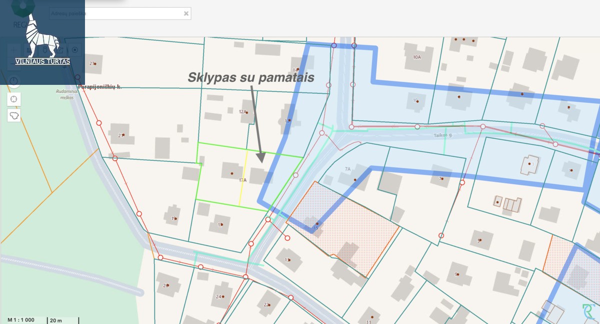 Bendras sklypo plotas – 20 arų, parduodamai daliai priklauso apie 9.50 aro, naudojimosi tvarka dar nėra sudaryta.
