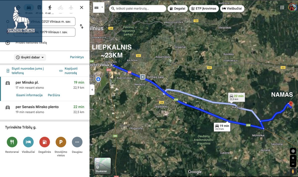 Iki Vilniaus Liepkalnio – 23 km.